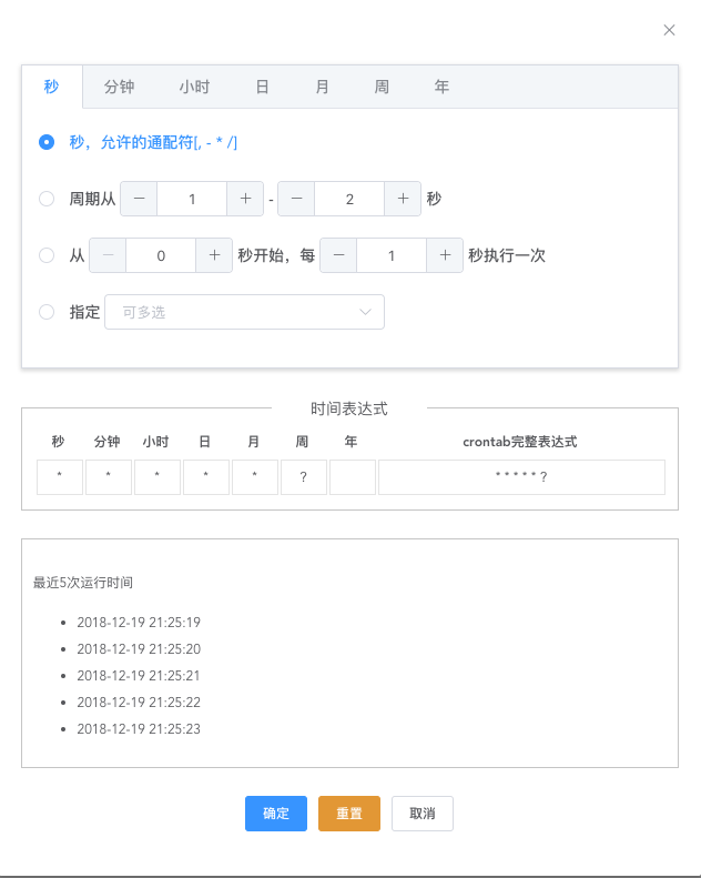 vue 的 cron 组件,支持解析/反解析 cron 表达式,生成最近五次的符合条件时间,依赖 vue2 和 element-ui